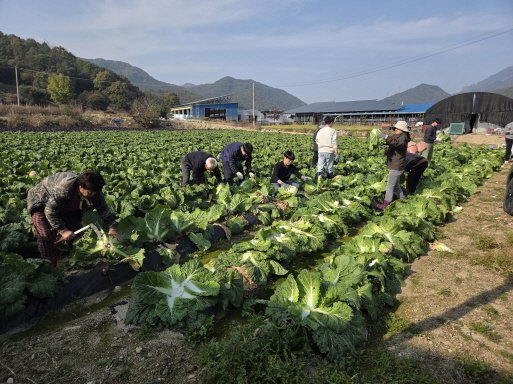 이날 김장철을 맞아 인력난을 겪고 있는 농가에 보탬이 되고자 배추 수확 및 운반과 함께 농가 주변정리를 했다.