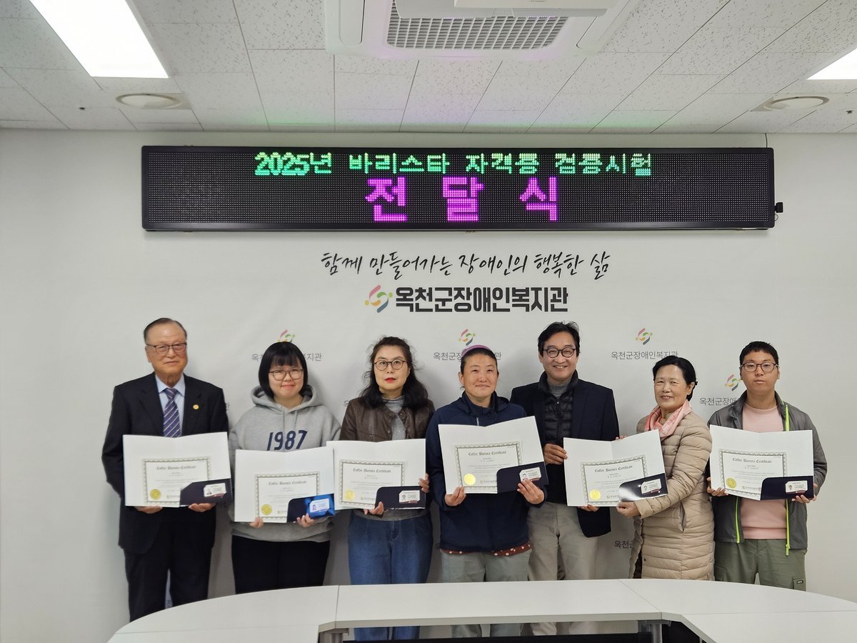 옥천군장애인복지관은 자격증 취득에 그치지 않고 참여자들이 전문 바리스타로 성장할 수 있도록 기능경기대회 출전과 지역 행사 커피 봉사 등 실제 현장 경험을 지속적으로 지원하며 자립 기반을 다지고 있다.