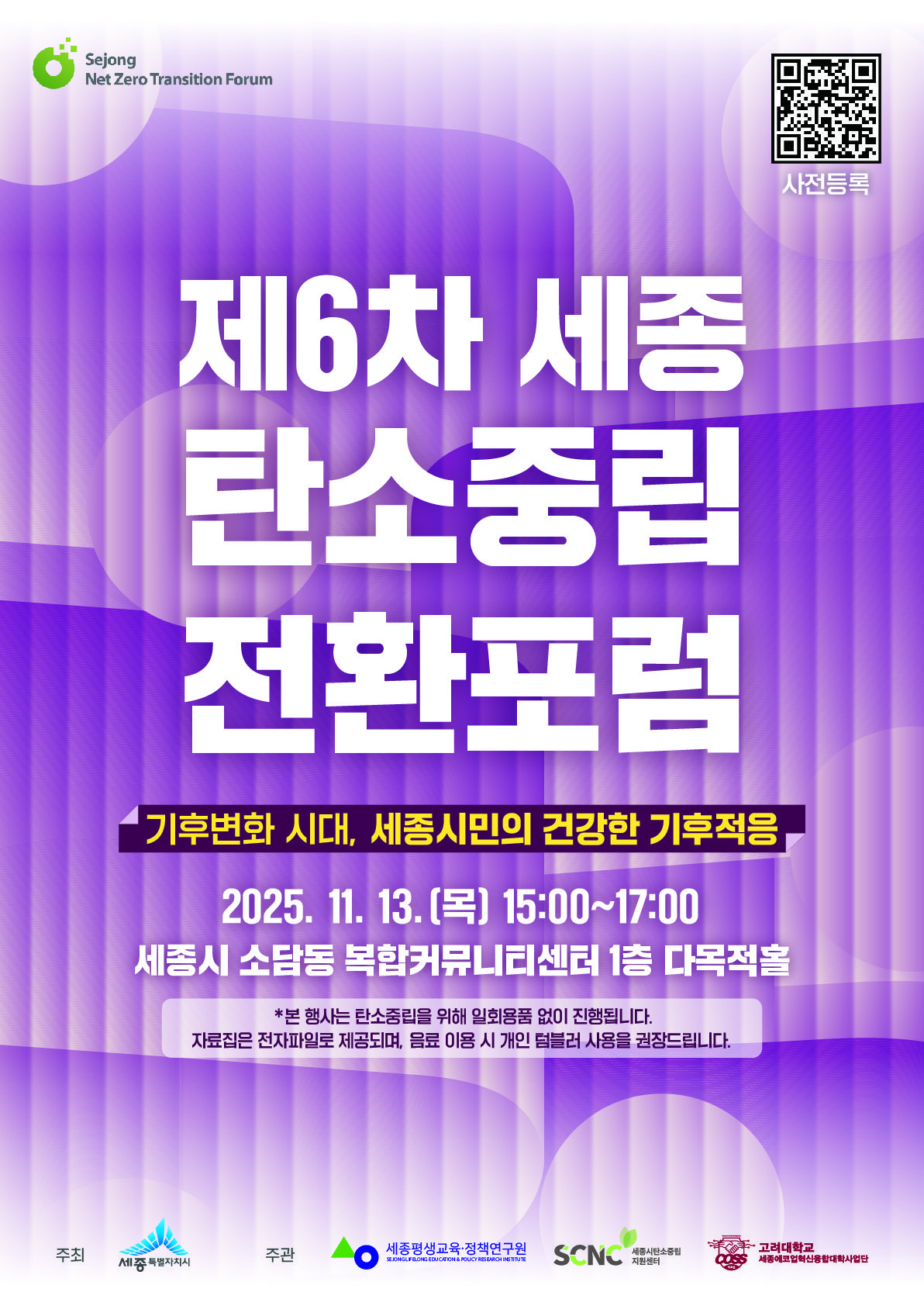이번 포럼은 세종시, 세종평생교육·정책연구원, 세종시탄소중립지원센터, 고려대 에코업혁신융합대학사업단이 공동주최한다.