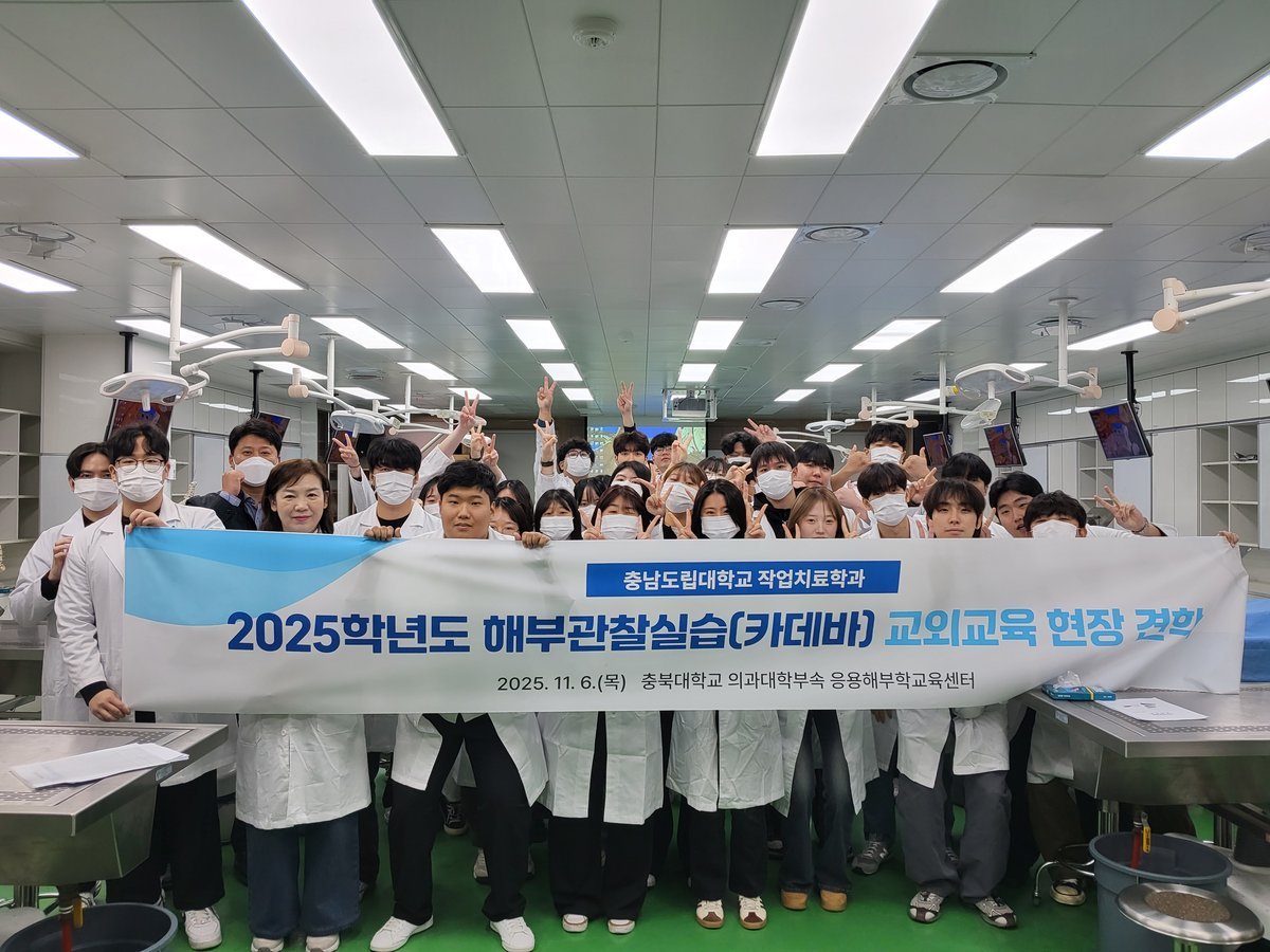[충청중심뉴스] 충남도립대학교 작업치료학과는 재학생과 지도교수진 등 43명이 참여한 가운데 충북대학교 의과대학부속 응용해부학교육센터에서 카데바 실습을 진행했다고 10일 밝혔다.