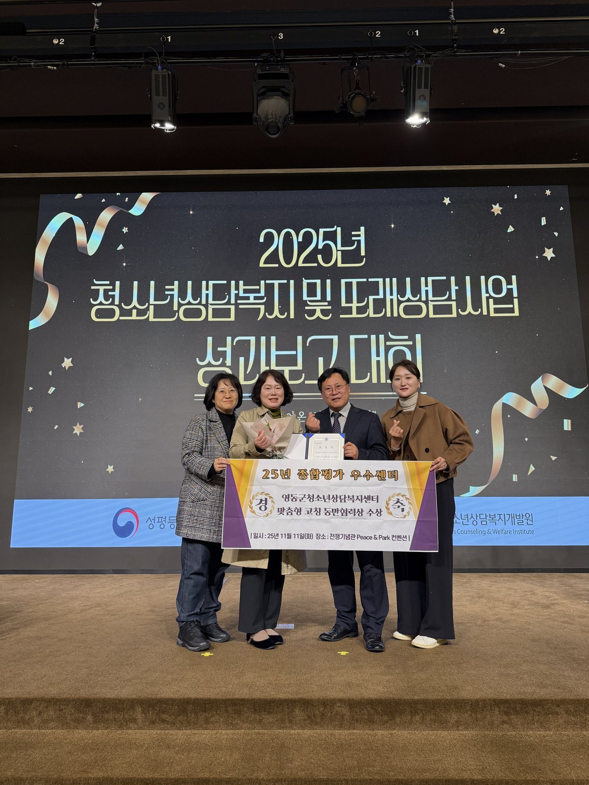 [충청중심뉴스] 충북 영동군청소년상담복지센터는 2023년 여성가족부로부터 청소년상담복지사업 분야 최우수기관으로 선정된 데 이어 2025년 종합평가 우수센터 1:1 맞춤형 코칭 프로그램을 성공적으로 추진하며 지역 청소년 상담복지 서비스의 모범을 보였다.
