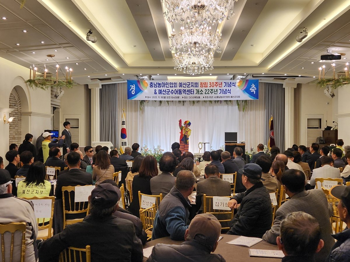 [충청중심뉴스] 예산군은 지난 10일 더스타웨딩홀에서 ‘충남농아인협회 예산군지회 창립 30주년 기념식’과 ‘예산군수어통역센터 개소 22주년 기념식’을 개최했다고 밝혔다.
