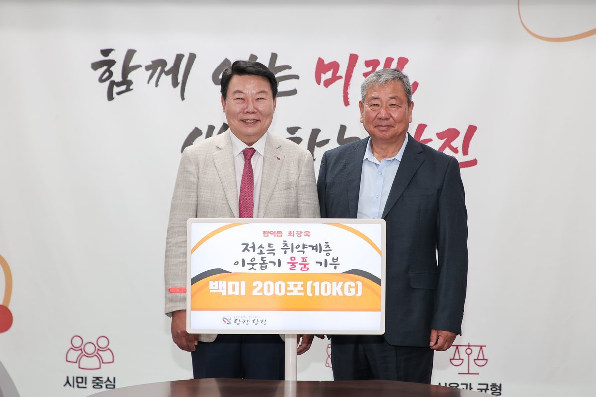 [충청중심뉴스] 당진시는 지난 11일 최장욱 전 합덕읍 이장단협의회장으로부터 어려운 이웃을 돕기 위한 백미 200포를 기탁받았다고 12일 밝혔다.