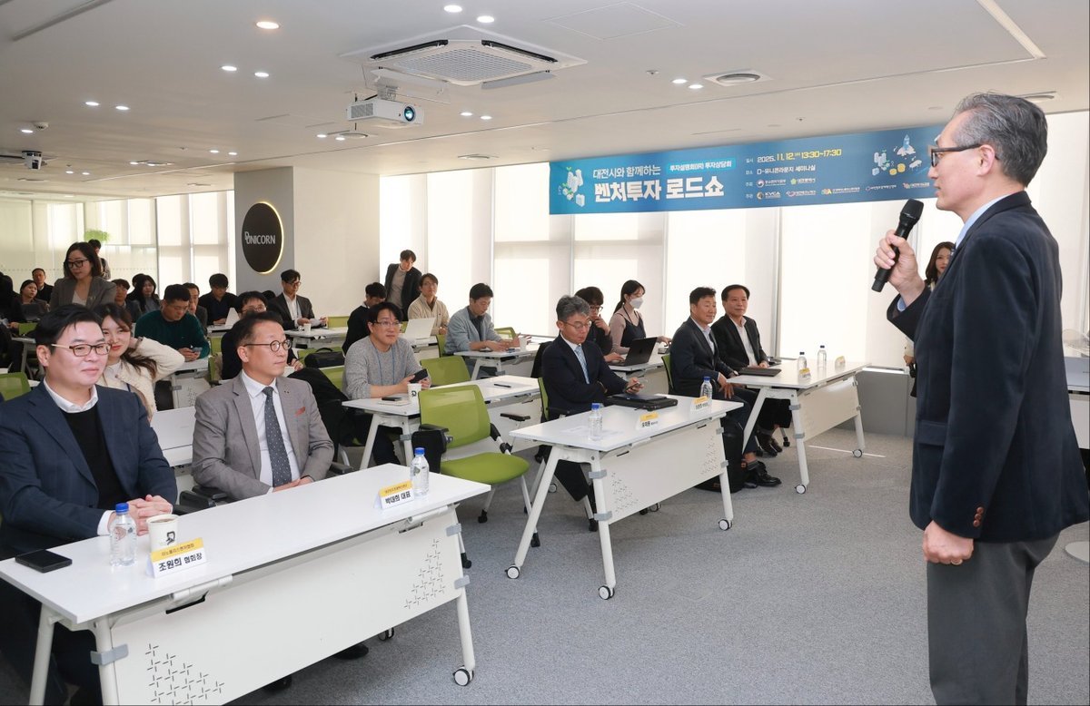 [충청중심뉴스] 대전시와 한국벤처캐피탈협회는 12일 대전의 유망기업과 수도권 투자기관을 초청해 D-유니콘라운지에서 ‘벤처투자로드쇼’를 개최했다.