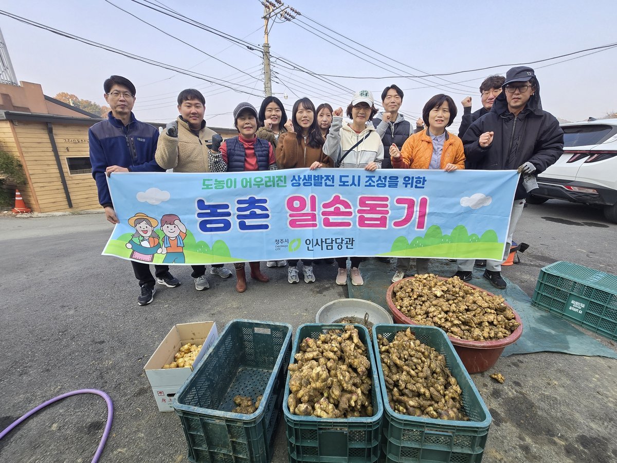 [충청중심뉴스] 청주시 인사담당관은 13일 서원구 남이면 팔봉리 소재의 생강 농가를 찾아 일손을 도왔다.