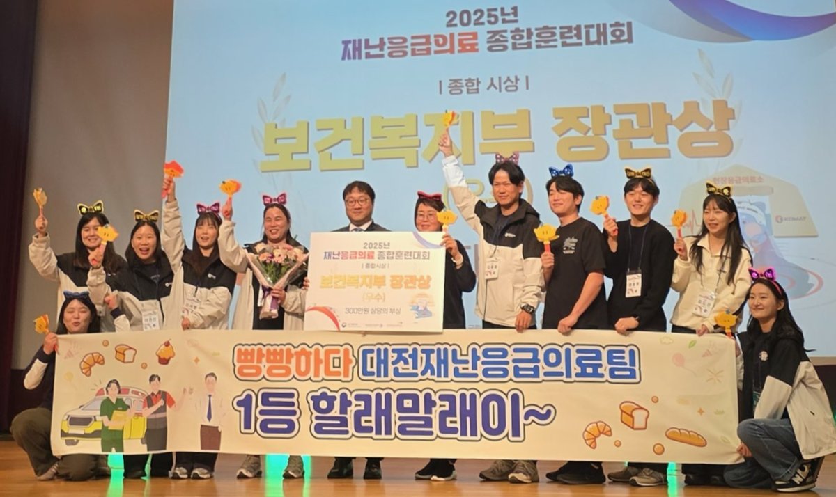 [충청중심뉴스] 대전시는 천안 JEI재능교육연수원에서 열린 보건복지부 주최 2025년 재난응급의료 종합훈련대회에서 전국 종합 2위를 차지하며 보건복지부 장관상을 수상했다.