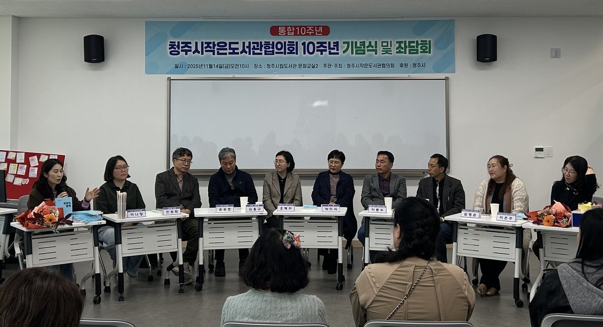 [충청중심뉴스] 청주시는 14일 청주시작은도서관협의회가 청주시립도서관 3층 문화교실에서 통합 10주년 기념식 및 좌담회를 개최했다고 밝혔다.