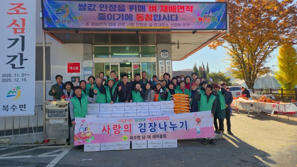 [충청중심뉴스] 금산군 복수면새마을지도자회와 새마을부녀회는 지난 13일부터 14일까지 복수면행정복지센터에서 지역 내 소외계층에게 따뜻한 마음을 나누기 위한 사랑의 김장 나누기를 전개했다.