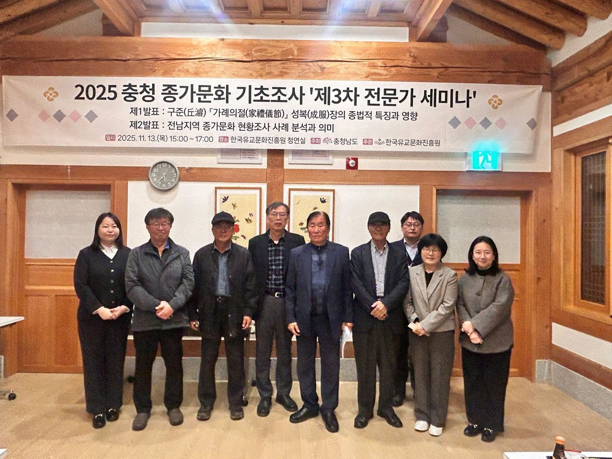[충청중심뉴스] 충청남도가 주최하고 한국유교문화진흥원이 주관한 ‘2025 충청 종가문화 기초조사 제3차 전문가 세미나’와 ‘하반기 충청 종가 워크숍’이 지난 11월 13일과 11월 14일 양일간에 걸쳐 진흥원에서 개최됐다.