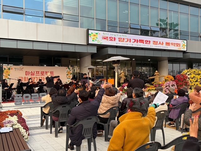 [충청중심뉴스] 서천군은 지난 18일 군청사 야외에서 ‘청사 마실 프로젝트’의 아홉 번째 프로그램인 국화 향기 가득한 청사 음악회를 성황리에 개최했다.