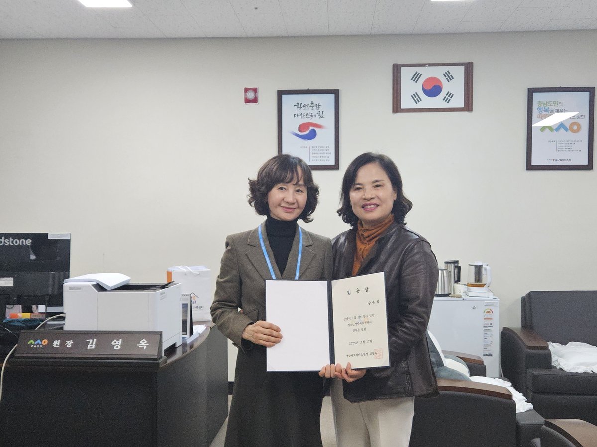 충남사회서비스원은 지난 11월 17일 강유임 센터장을 신임 청소년상담복지센터장으로 임용했다고 밝혔다.