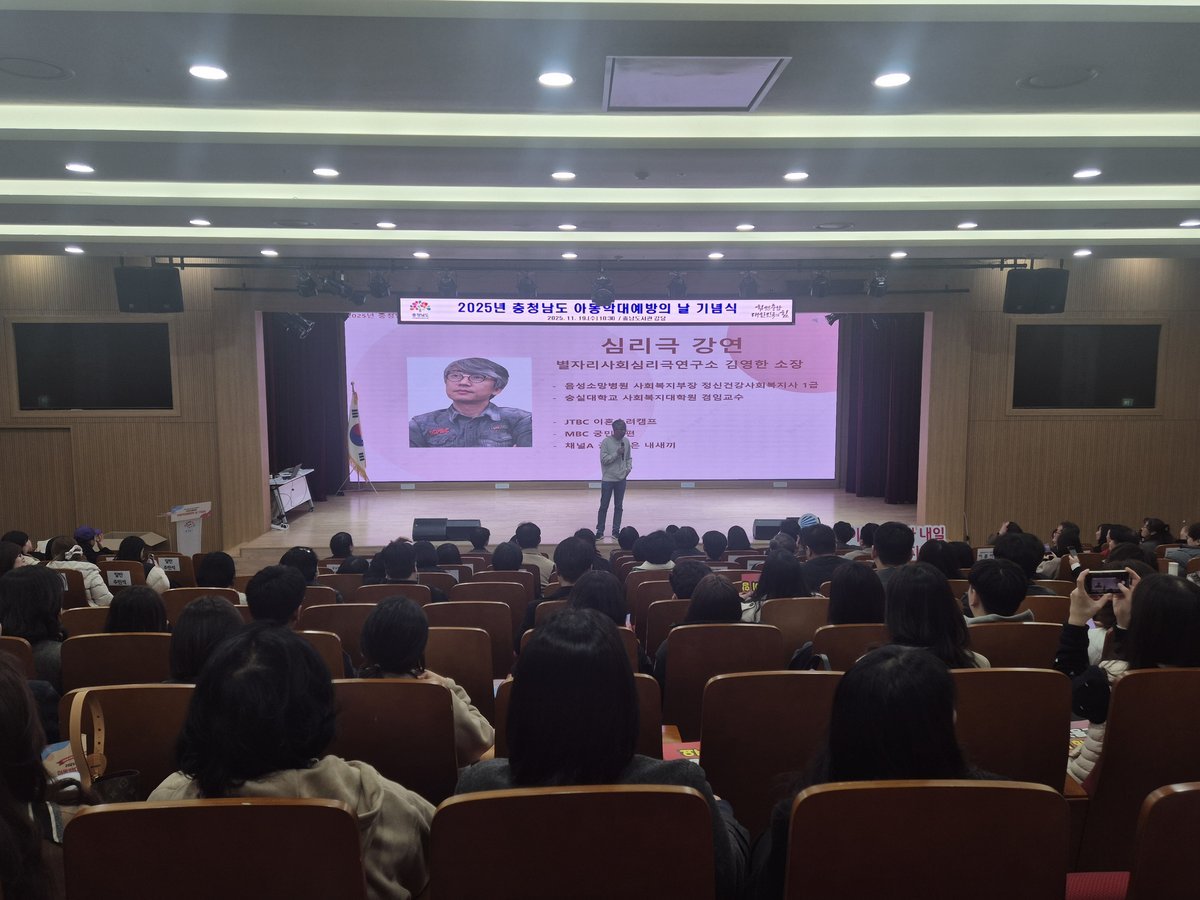 아울러 이날 김영한 별자리 사회심리극 연구소장을 충남 아동학대 예방 홍보대사로 위촉했으며, 김 소장은 심리극 강연을 통해 참석자들에게 부모·자녀 간 공감과 소통의 중요성을 전달했다.