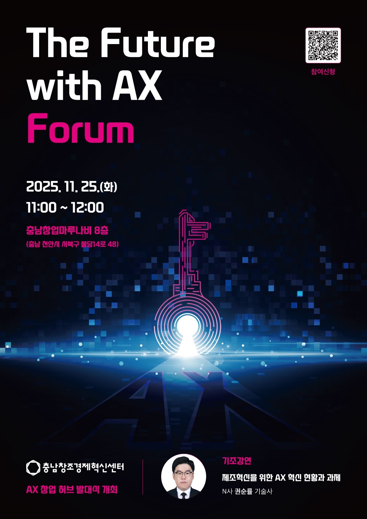 이번 포럼에서는 충남 AX 창업허브 위원회 출범식을 함께 진행하며 지역 산업 혁신과 창업 생태계 활성화를 위한 정보가 공유될 예정이다.