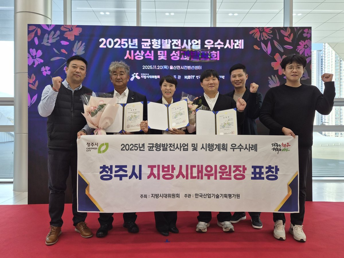 [충청중심뉴스] 청주시는 20일 울산전시컨벤션센터에서 열린 ‘2025년 균형발전사업 및 시행계획 우수사례 시상식’에서 지방시대위원장 기관 표창을 수상했다.