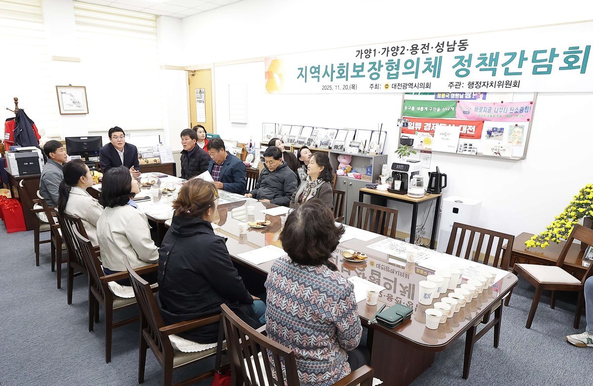 [충청중심뉴스] 대전시의회 행정자치위원회 정명국 위원장은 20일 시의회 행정자치위원장실에서 ‘가양1·가양2·용전·성남동 지역사회보장협의체 정책간담회’를 개최하고 협의체 운영 현황과 현장 애로사항을 청취했다.
