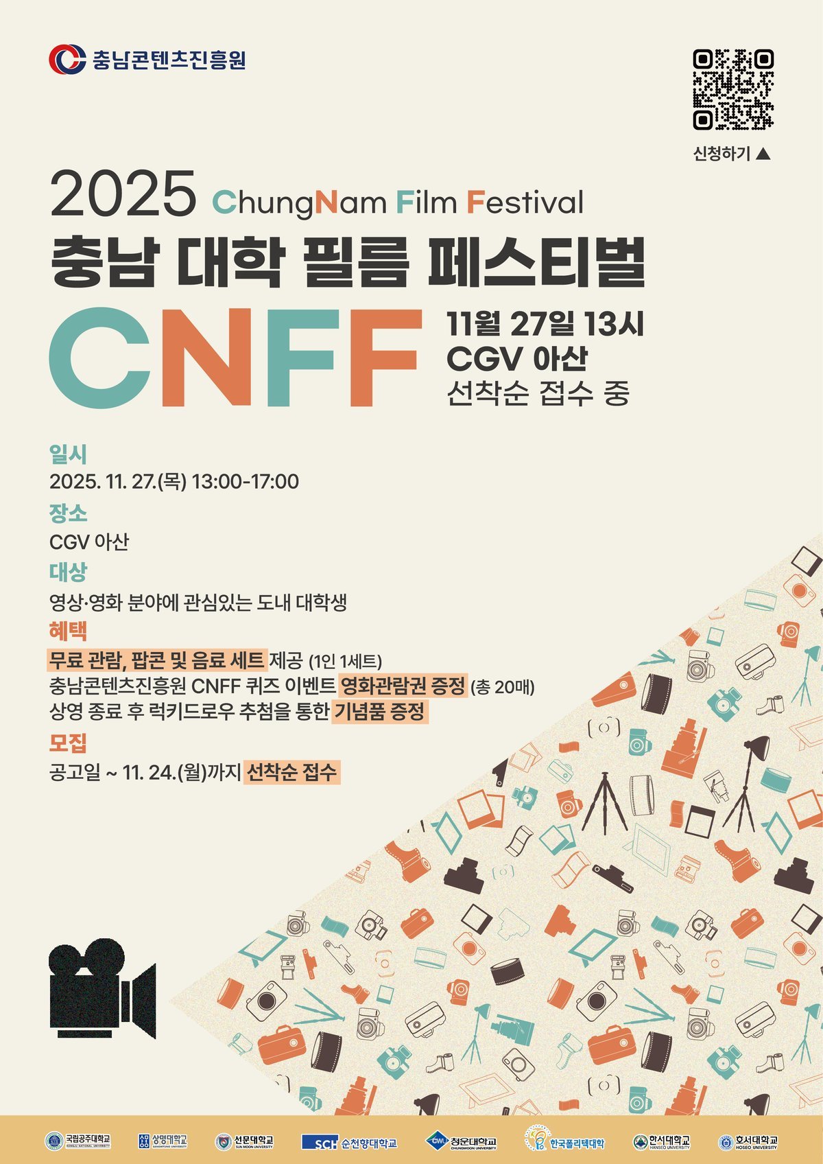 행사는 영화에 관심이 있는 충남도민과 도내 대학생이라면 누구나 무료로 참여 가능하다.
