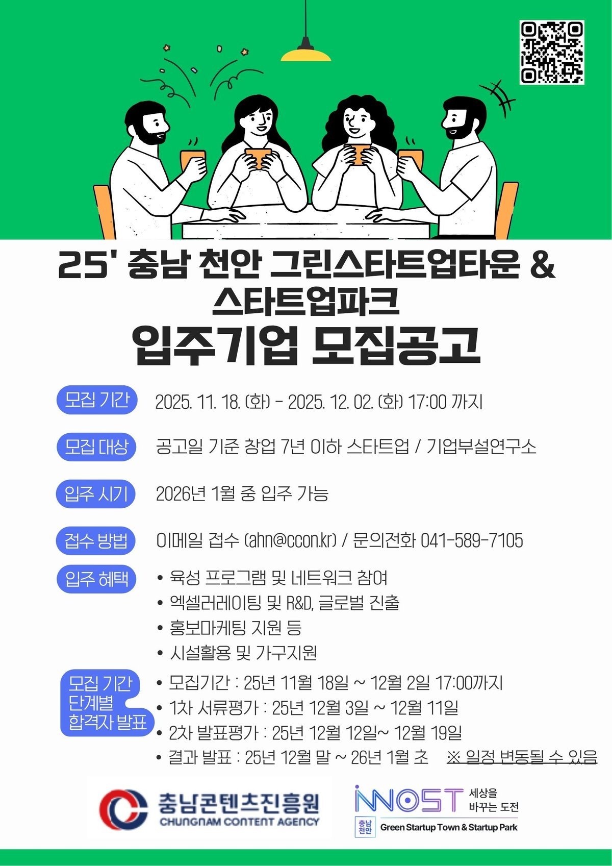 [충청중심뉴스] 충남콘텐츠진흥원은 오는 12월 2일까지 ‘충남 천안 복합형 스타트업 파크’에 입주할 신규 스타트업을 모집한다고 밝혔다.