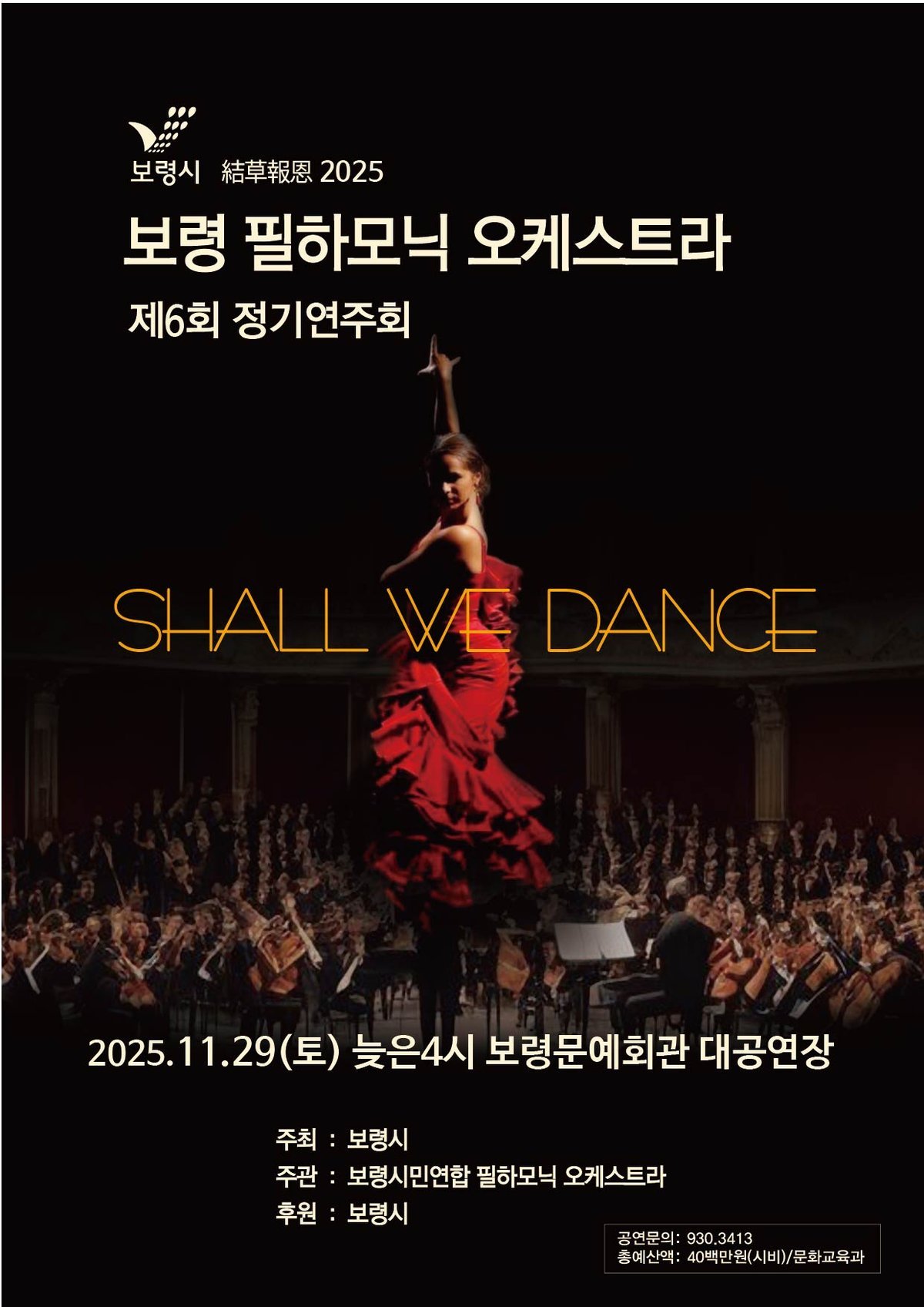 [충청중심뉴스] 보령시민연합 필하모닉 오케스트라가 오는 11월 29일 오후 4시 보령문화예술회관 대공연장에서 제6회 정기연주회 ‘Shall We Dance’를 개최해 시민들에게 특별한 음악적 감동을 선사한다.