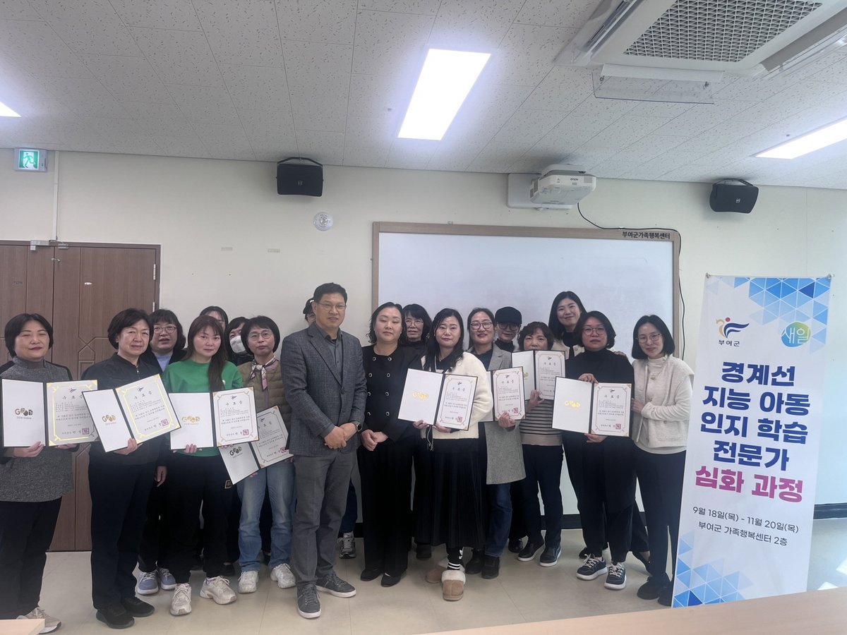 [충청중심뉴스] 부여군은 지난 11월 20일 부여 여성새로일하기센터에서 경계선 지능 아동 지원을 위해 양성해 온 ‘ 인지학습 전문가 과정’심화 교육이 최종 종료되어 수료식을 개최했다.