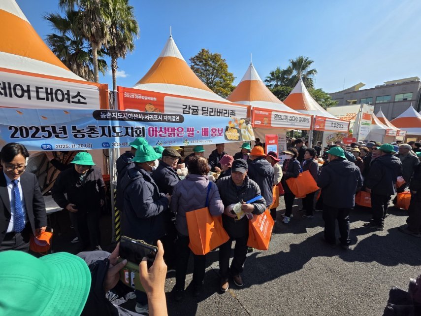 김남훈 농촌지도자아산시연합회장은 “서귀포 지역을 방문해 많은 관광객과 시민들에게 아산 농산물의 우수성을 직접 소개할 수 있는 뜻깊은 시간이었다”며 “앞으로도 서귀포시와의 교류를 지속해 아산 농업의 판로 확대와 경쟁력 강화에 힘쓰겠다”고 말했다.