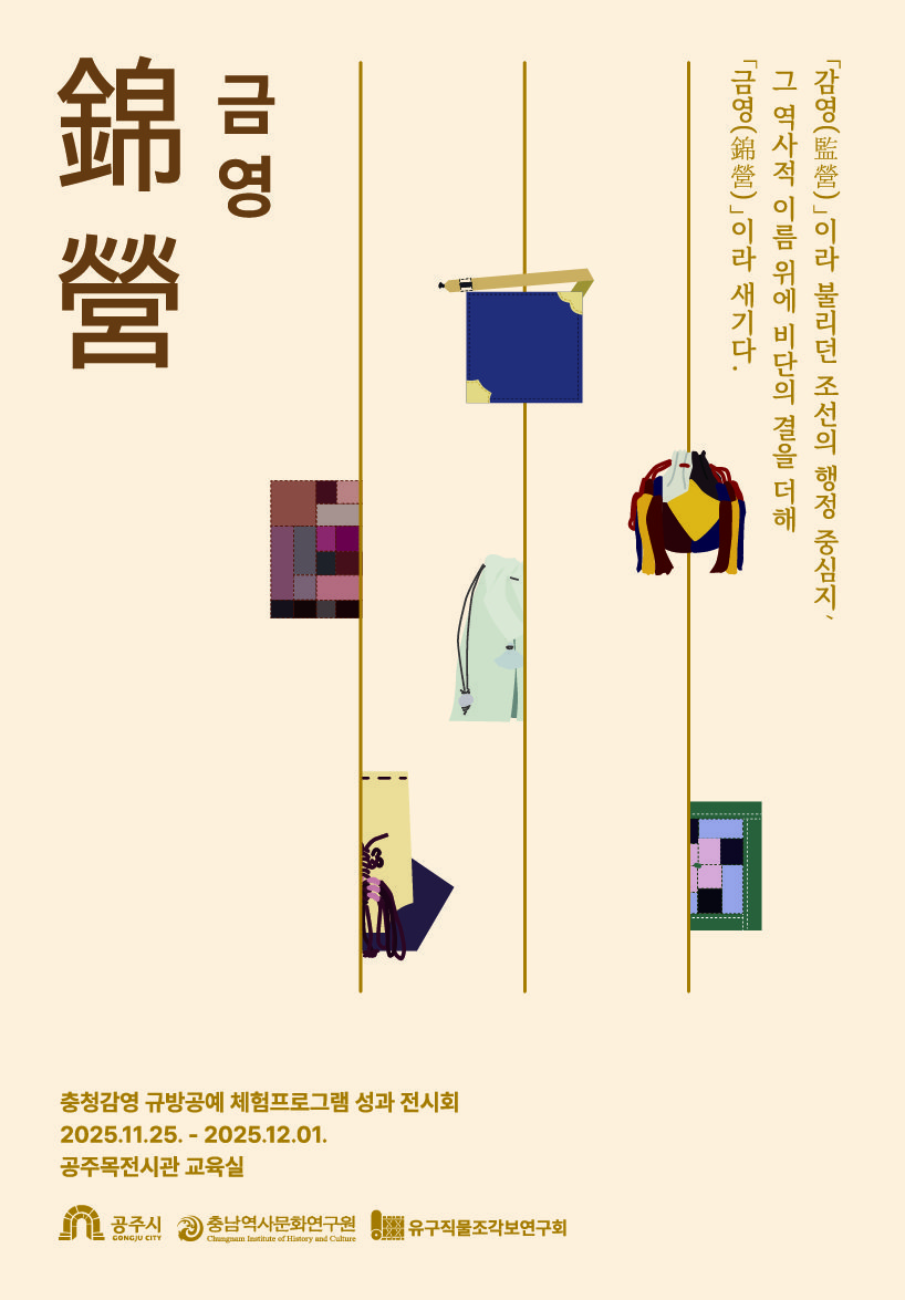장기승 충청남도역사문화연구원장은 “이번‘금영’전시가 시민들에게 충청감영과 공주의 역사적 가치를 재조명하고 우리 전통 규방공예의 매력을 알리는 소중한 기회가 되기를 바란다”고 전했다.