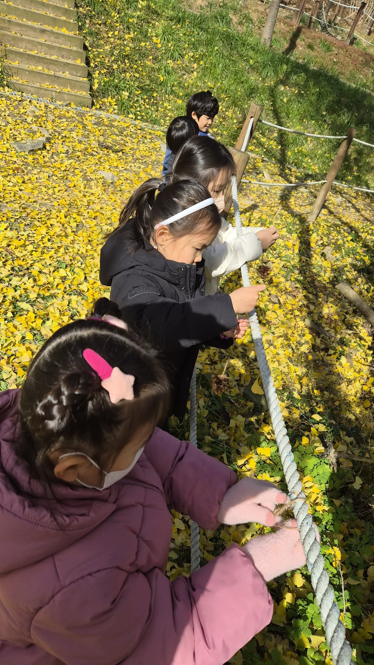 유아들은 직접 만든 버드피드를 장군산 숲속 나무에 걸어 겨울새들의 먹이를 준비하고 김장을 함께 담그며 협력과 나눔의 가치를 경험했다.
