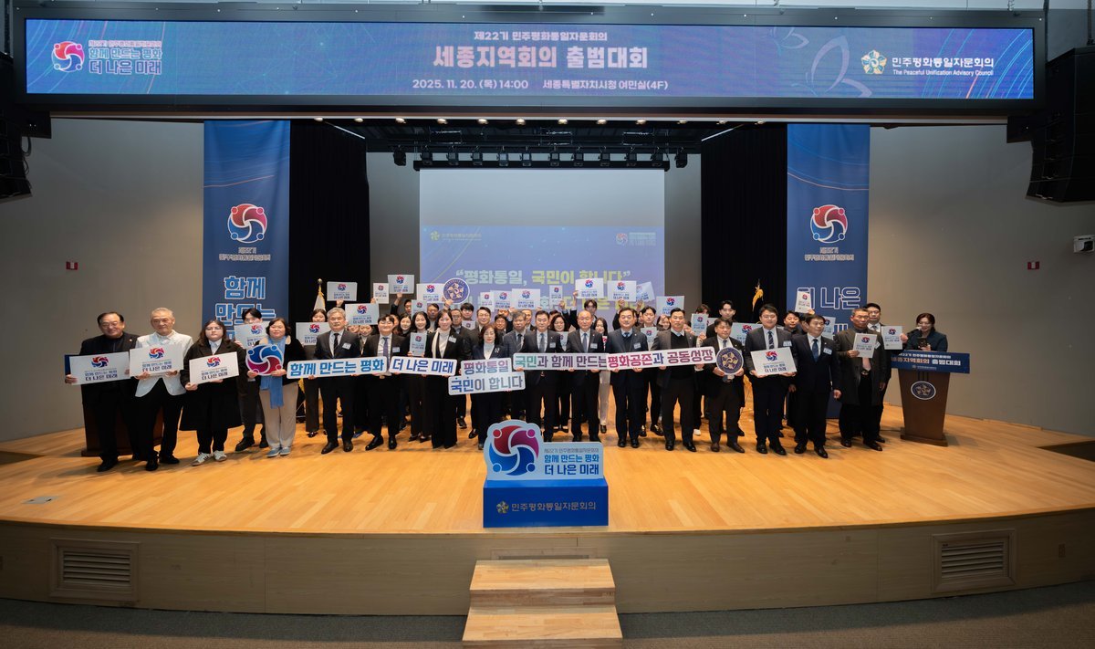 [충청중심뉴스] 민주평화통일자문회의 세종지역회의은 ‘제22기 민주평화통일자문회의 세종지역회의 출범대회’를 11월 20일 세종시청 여민실에서 개최했다출범대회는 1부 개회식에 이어 진행된 2부 정기회의는 △기관소개와 자문위원 역할 안내, △임원인준, △2025년 주요사업 안건심의 순으로 진행됐다.