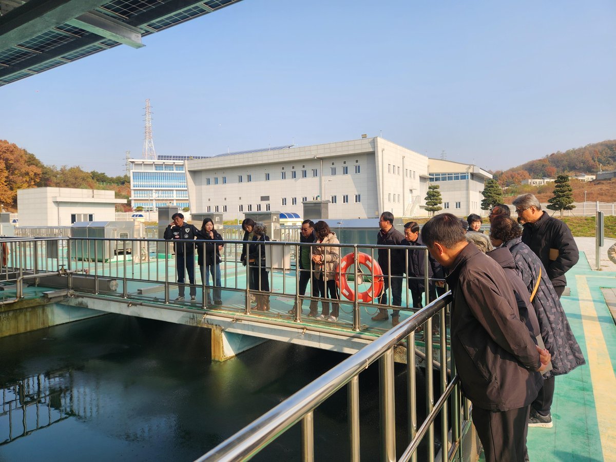 현장 견학은 착수정부터 시작해 표준정수처리공정 과정의 응집·침전지, 여과지를 거쳐 고도정수처리 과정인 오존 접촉지, 활성탄 흡착지를 지나 폐수 배출 처리시설을 견학하는 순서로 진행됐다.