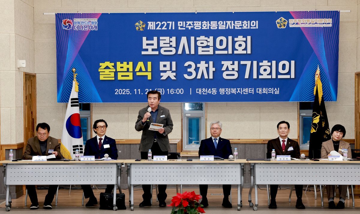 [충청중심뉴스] 민주평화통일자문회의 보령시협의회는 지난 21일 대천4동 행정복지센터 대회의실에서 김동일 보령시장과 정윤 민주평통 충남부의장, 자문위원 등 60명이 참석한 가운데 ‘제22기 출범식 및 2025년 3차 정기회의’를 개최했다.