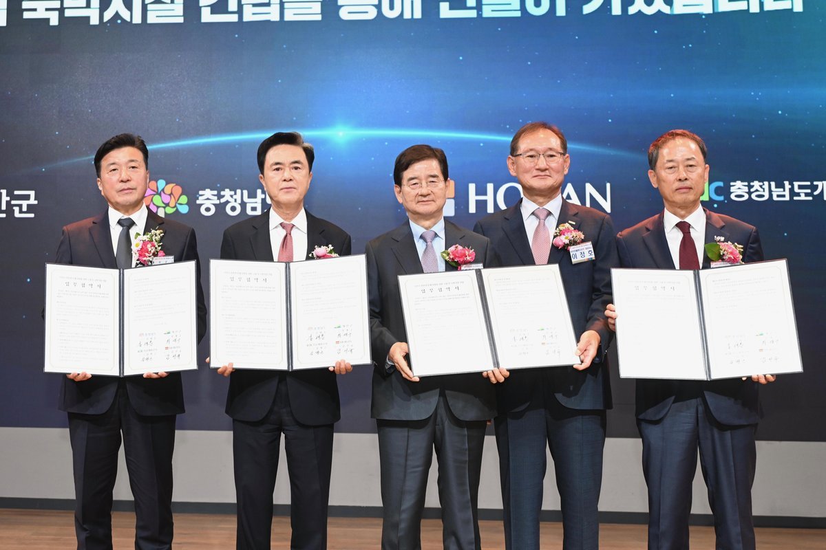 [충청중심뉴스] 예산군은 24일 충청남도, 충남개발공사, ㈜호반호텔앤리조트와 함께 덕산온천관광지에 고품격 숙박시설 및 컨벤션 기능을 갖춘 복합 휴양시설 건립을 위한 업무협약을 체결했다.