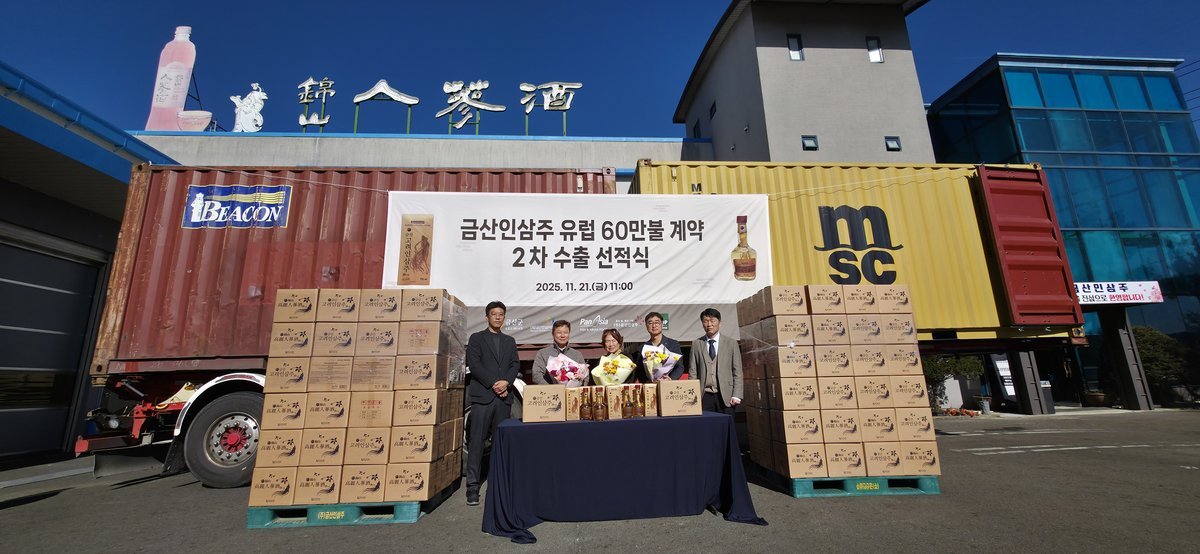 [충청중심뉴스] 금산군 금성면 소재 인삼주 제조업체 ‘금산인삼주’는 지난 21일 10만 달러 규모 인삼주를 선적하며 2차 오스트리아 수출길에 나섰다.