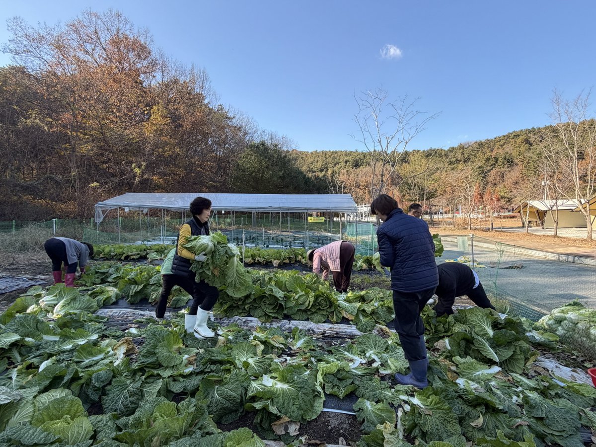 이번 행사는 공단 직원들이 굿뜨래웰빙마을 글램핑장에서 직접 재배한 친환경 배추 200여 포기를 기부하기 위해 마련됐다.
