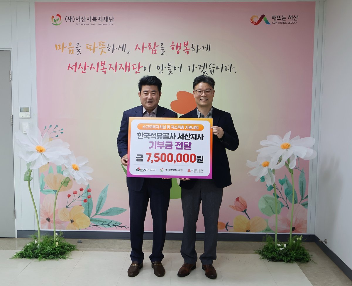 이날 진행된 기탁식에는 한국석유공사 서산지사 강상현 지사장, 서산시복지재단 장갑순 이사장이 참석했다.