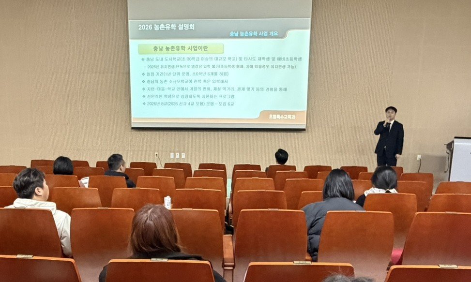 [충청중심뉴스] 충남교육청 은 26일, 충남교육청과학교육원 에서 농촌유학에 관심있는 학부모를 대상으로 ‘2026 충남 농촌유학 학부모 설명회 ’를 개최했다.
