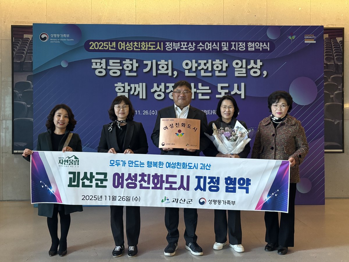 [충청중심뉴스] 충북 괴산군은 성평등가족부와 여성친화도시 지정 협약을 체결하고 오는 2026년부터 2030년까지 5년간 여성친화도시 사업을 추진한다고 27일 밝혔다.