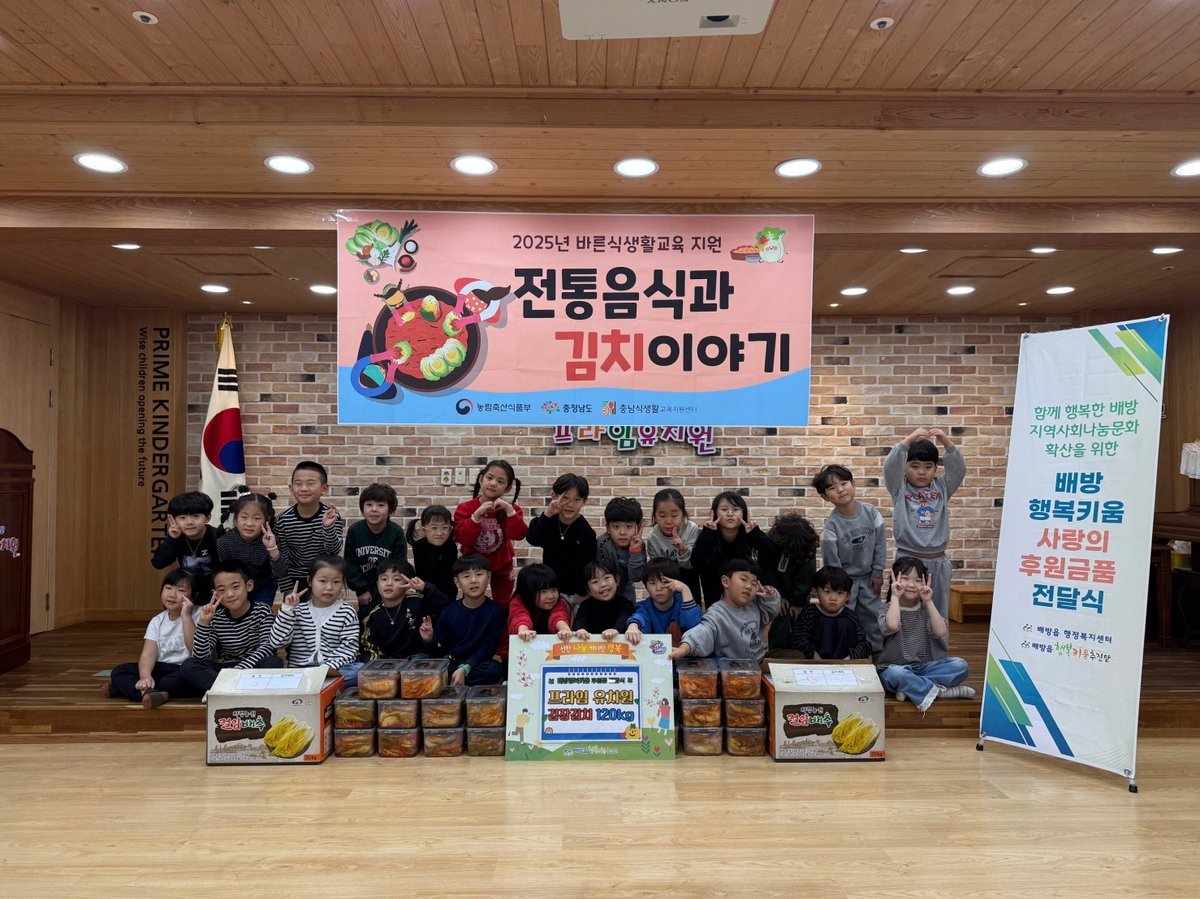 [충청중심뉴스] 아산시 배방읍 행복키움추진단은 배방읍 북수리 소재 프라임 유치원이 26일 김장김치 120kg을 기부했다고 밝혔다.