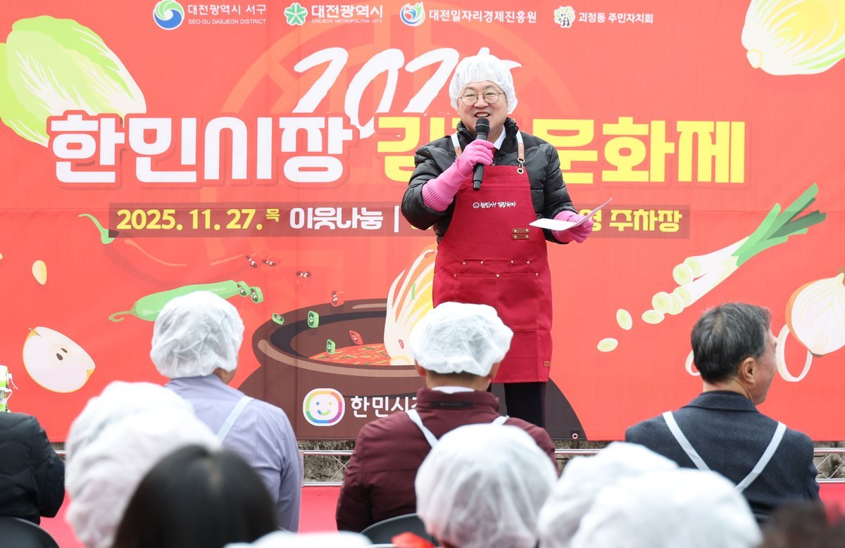[충청중심뉴스] 대전시는 27일 한민시장 제2주차장에서 ‘2025 한민시장 김장문화제’를 열고 지역사회에 따뜻한 나눔을 전하며 전통시장 활성화에 힘을 보탰다.