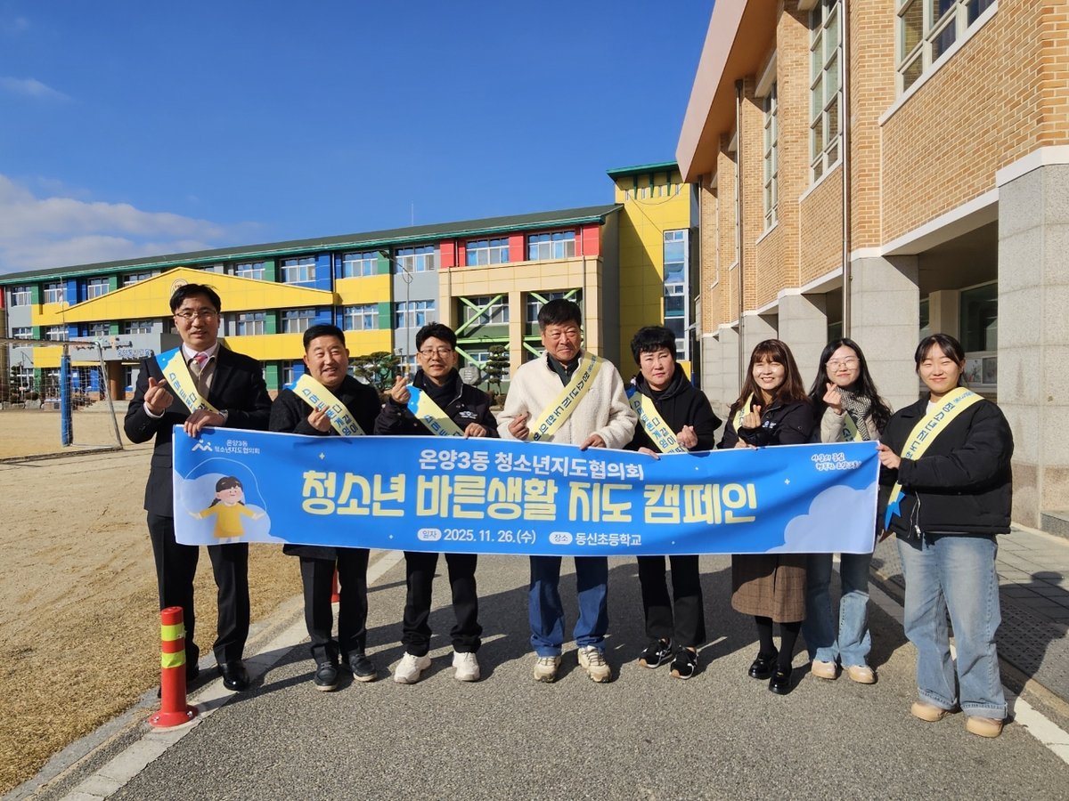 [충청중심뉴스] 아산시 온양3동 청소년지도협의회는 지난 26일 온양동신초등학교에서 청소년 바른생활 지도 캠페인을 실시했다.