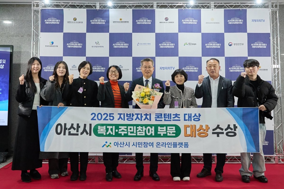 [충청중심뉴스] 아산시가 27일 국회의원회관 대회의실에서 열린 ‘2025 지방자치 콘텐츠대상’에서 기초자치단체 복지·주민참여 부문 대상을 수상했다.