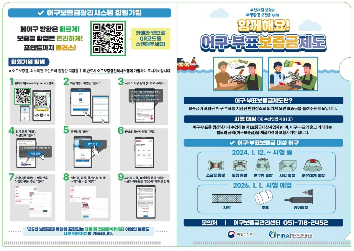 어구보증금제 회수관리 사업은 어구 판매 시 일정 금액의 보증금을 포함해 어업인에게 판매하고 이후 어업인이 사용한 어구를 지정된 장소로 가져오면 보증금을 돌려주는 자발적 회수 제도로 지난해 1월부터 시행 중이며 수산업법에 근거를 두고 있다.
