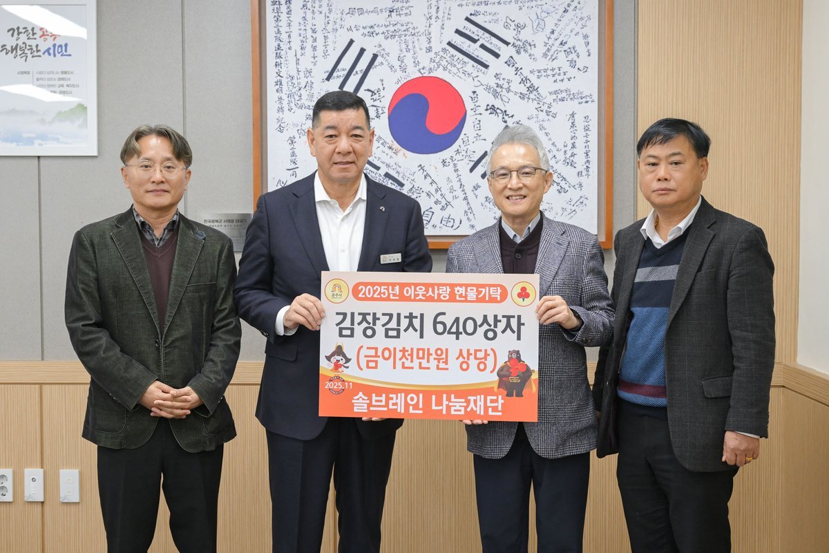 최원철 시장은 “솔브레인 나눔재단의 지속적인 사회공헌에 깊이 감사드린다”며 “이번 기탁이 겨울철을 맞은 취약계층 가정에 큰 힘이 될 것”이라고 말했다.