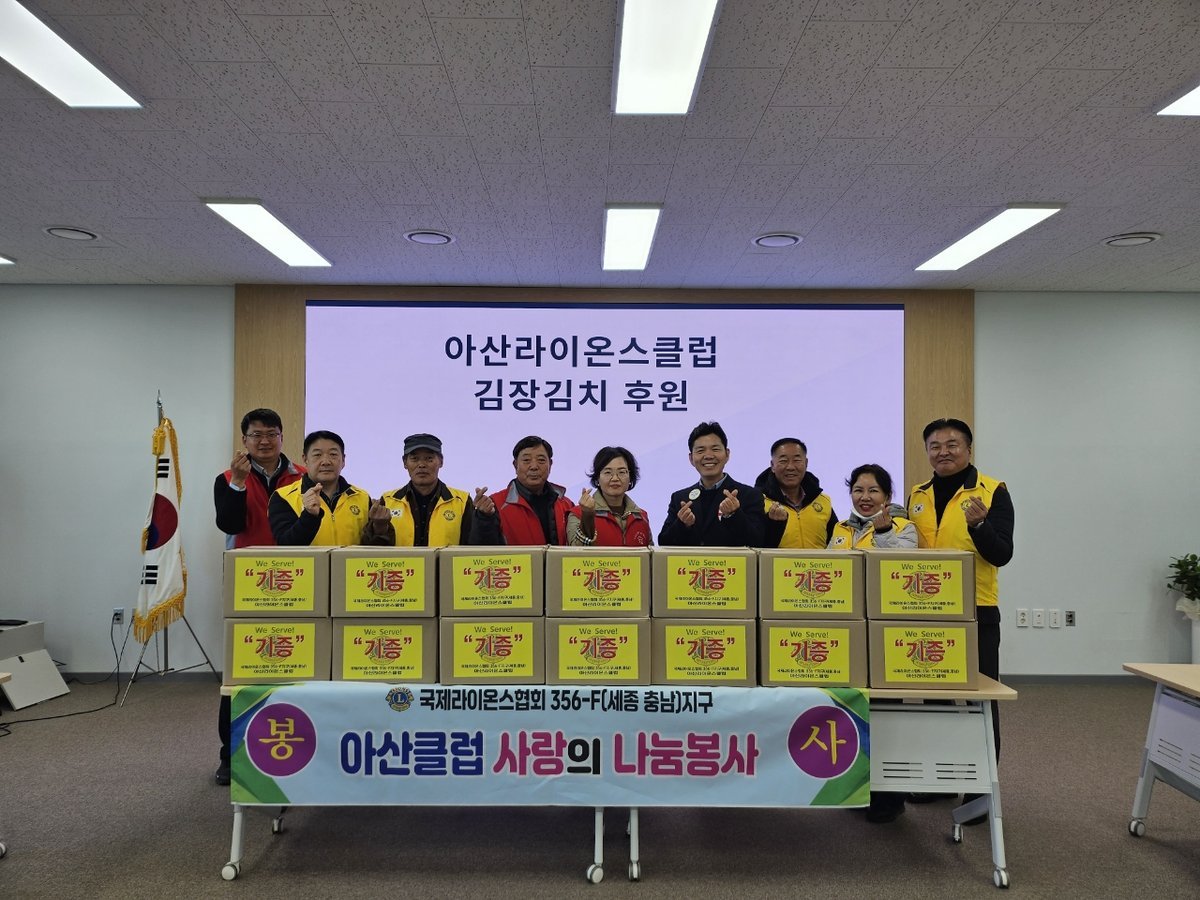 [충청중심뉴스] 아산라이온스클럽은 지난 1일 아산시 인주면 행복키움추진단에 김장김치를 전달하며 지역사회 나눔 활동에 동참했다.