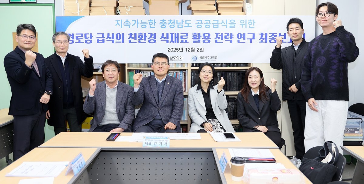 도의회 ‘공공급식 활성화 방안 마련을 위한 연구모임’이 2일 국립공주대학교 예산캠퍼스 산업과학관 세미나실에서 제3차 회의 및 연구용역 최종보고회를 열고, 충남형 경로당 공공급식 모델 구축 방안을 최종 점검했다.