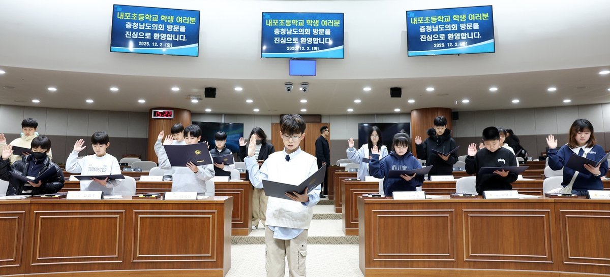 [충청중심뉴스] 충남도의회는 2일 홍성 내포초등학교 학생 20명과 지도교사 1명이 참여한 가운데 ‘청소년 의회교실’을 개최했다.