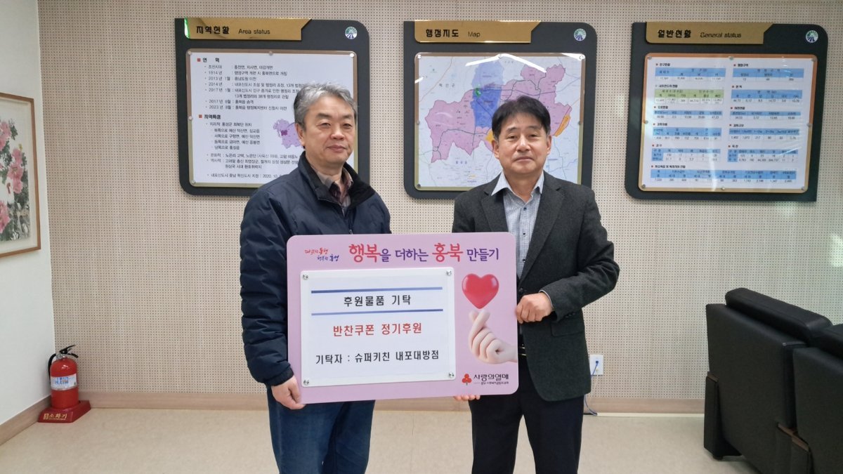 [충청중심뉴스] 홍성군 홍북읍은 지난 2일, 슈퍼키친 내포대방점이 관내 저소득층을 지원하기 위해 2만원 반찬쿠폰 120매를 기탁했다고 밝혔다.