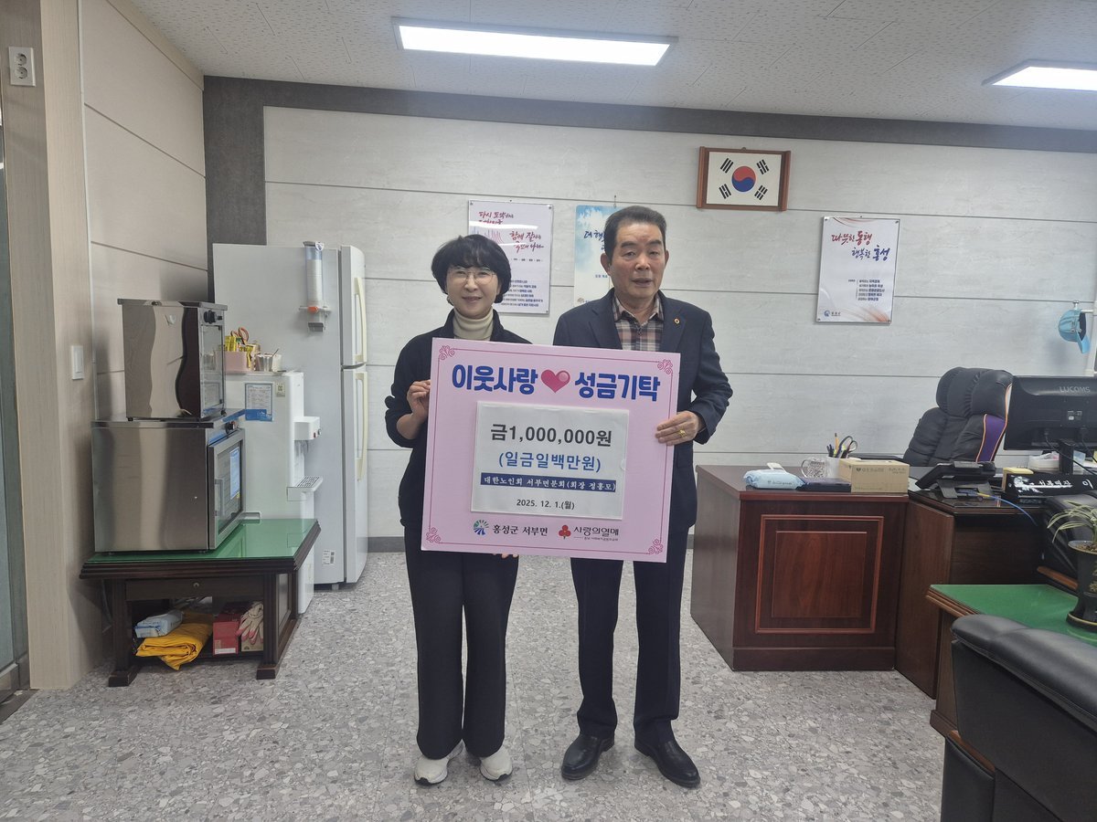 [충청중심뉴스] 홍성군 서부면은 지난 1일, ‘희망2026 나눔캠페인’의 힘찬 시작과 함께 대한노인회 서부면분회에서 성금 100만 원을 기탁하며 따뜻한 나눔의 첫걸음을 내디뎠다고 밝혔다.
