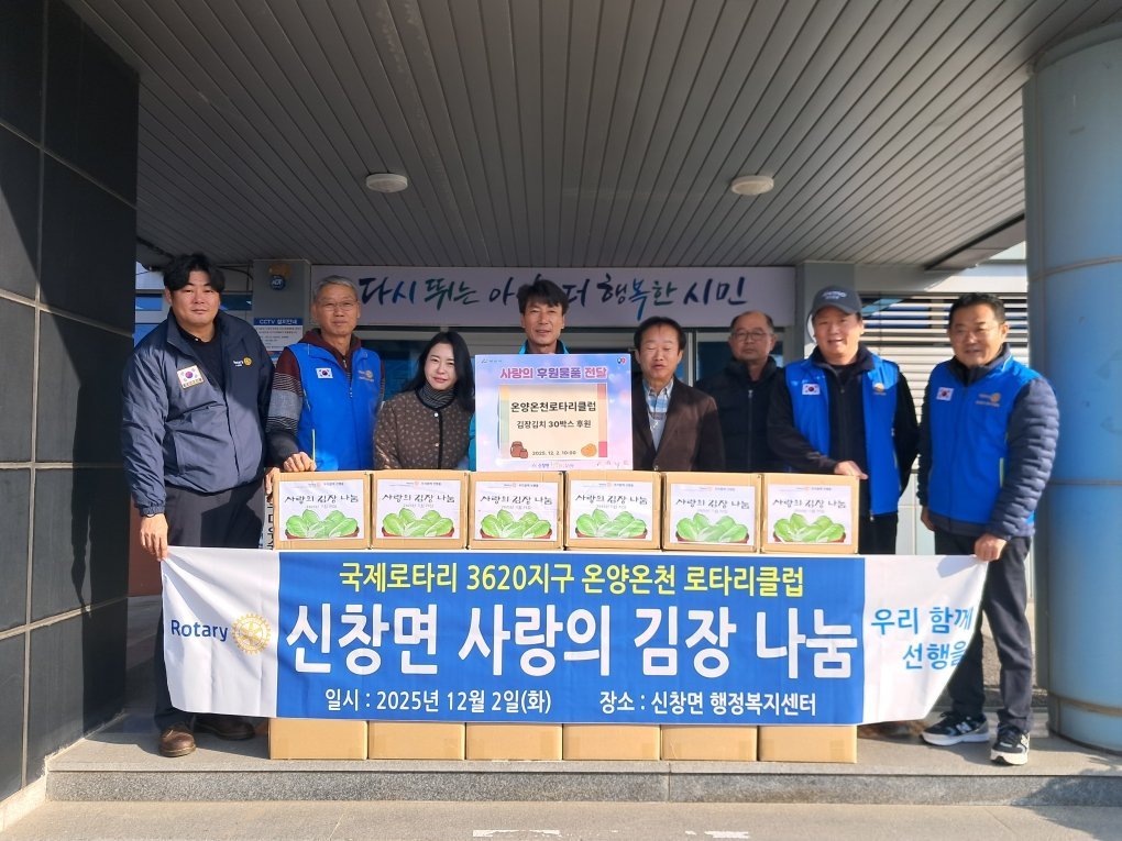 지민영 면장은 “바쁜 일정에도 기꺼이 나눔을 실천하며 지역사회에 온정을 전해주고 있는 온양온천로타리클럽에 깊이 감사드린다”며 “앞으로도 민·관이 함께 따뜻한 지역 공동체를 만드는 데 노력하겠다”고 밝혔다.