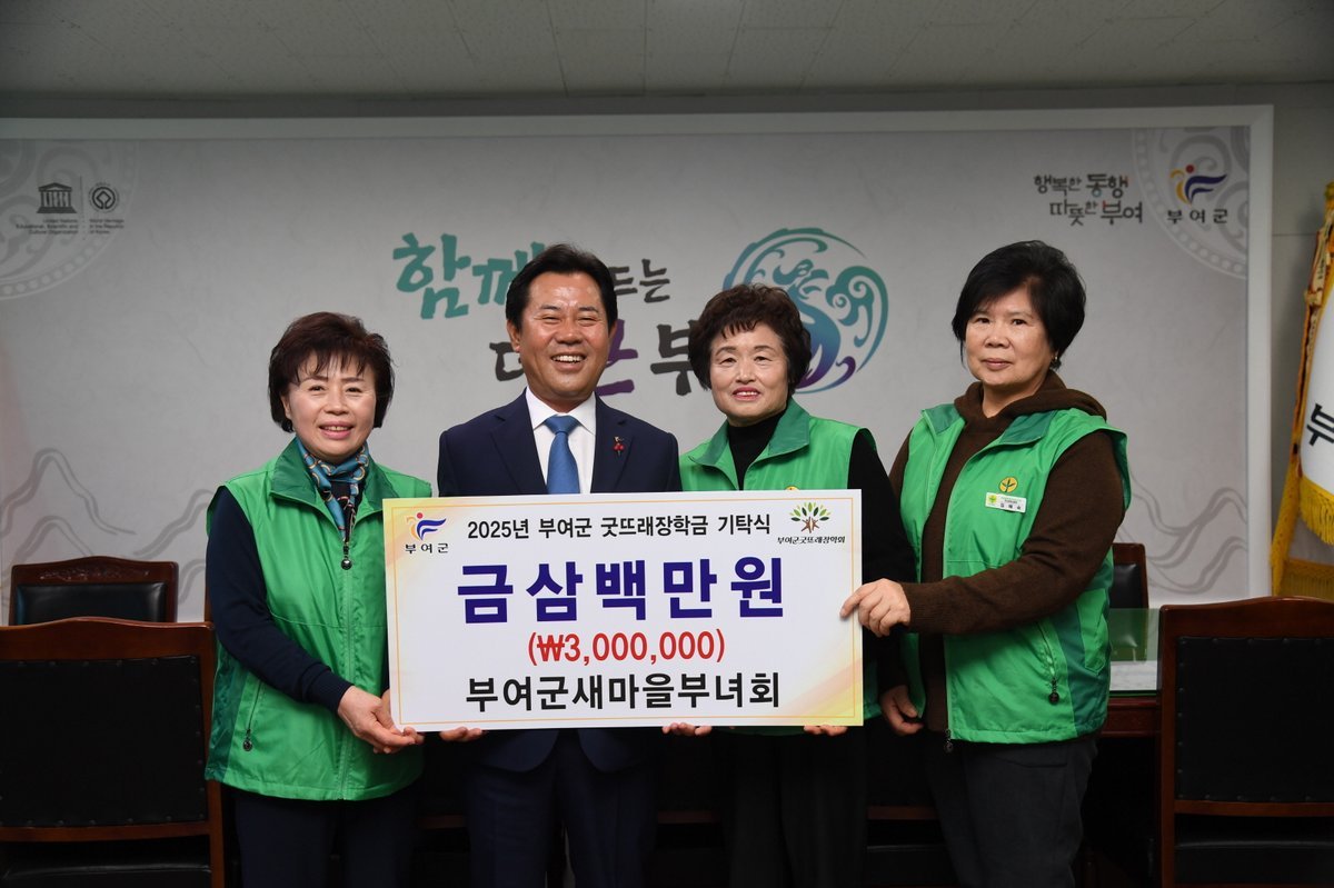 [충청중심뉴스] 부여군새마을부녀회는 부여군청을 방문하여 인재 육성을 위한 장학금 3백만 원을 부여군굿뜨래장학회에 기탁 했다고 4일 밝혔다.