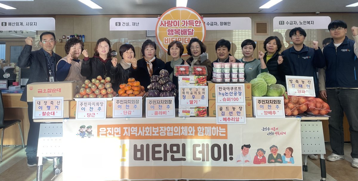 ‘건강한 비타민 데이! 사랑 가득한 행복배달’은 지역 내 단체와 기업, 개인의 후원을 받아 진행되는 논산시 은진면의 지역특화사업으로, 매월 첫째 주 수요일 어려운 이웃에게 정성이 담긴 선물을 전하며 온정을 나누고 있다.