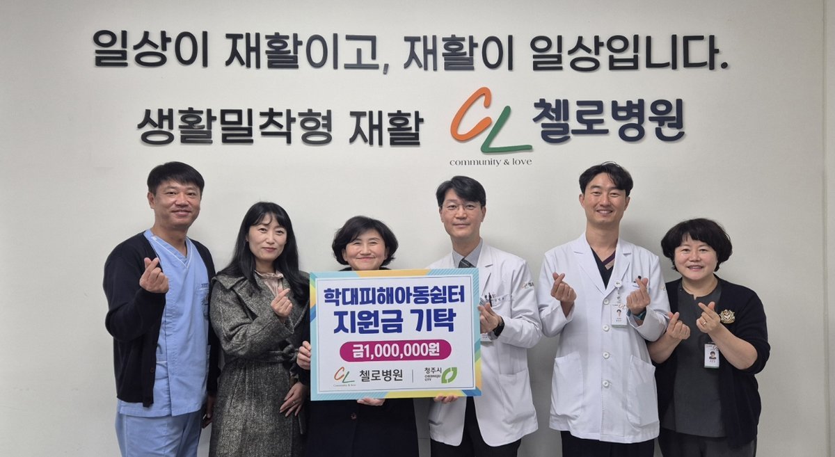 [충청중심뉴스] 청주시는 4일 청원구 내덕동에 위치한 첼로병원이 학대 피해를 받은 아동을 위해 써달라며 후원금 100만원을 기탁했다고 밝혔다.